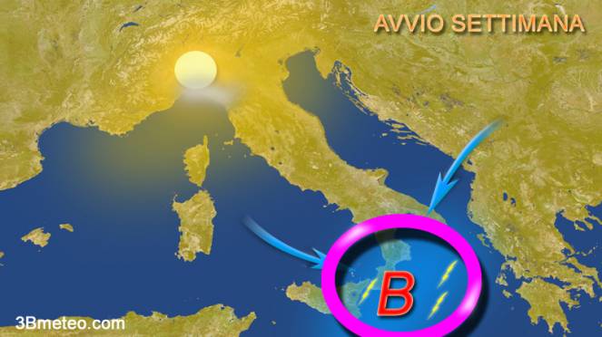L'estremo Sud invece risentirà del vortice di bassa pressione in spostamento sullo Ionio; ci sarà ancora la possibilità per qualche fenomeno, anche sotto forma di acquazzone o temporale, su Sicilia centro orientale e Calabria. Locali acquazzoni pomeridiani saranno anche possibili su Puglia, Lucania, Campania orientale, rilievi laziali ed abruzzesi .martedì ancora un po' di variabilità su Calabria, Puglia e rilievi della Campania con qualche fenomeno. Bel tempo prevalente altrove. Peggiora entro sera sulle Alpi