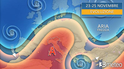 ALTA PRESSIONE MA NON PER TUTTI: Dopo il maltempo degli ultimi giorni e le pioggie alluvionali cadute sulla Calabria Jonica, l'ultima settimana del mese di novembre si presenterà in gran parte caratterizzata dall'alta pressione. Un anticiclone ibrido che esordirà come azzorriano e poi evolverà come africano per l'approfondimento di una depressione atlantica verso la Spagna. All'incirca a metà settimana i massimi barici dovrebbero andare a collocarsi tra l'Italia e l'Europa orientale portando tempo stabile quasi ovunque. Nel contempo la depressione mediterranea si allontanerà verso la Turchia ma avrà ancora modo di portare qualche disturbo sulle estreme regioni meridionali.