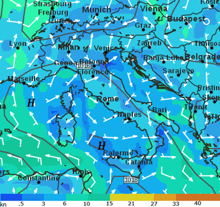 Previsione della settimana: Lunedì 14, ore 14: Pressione tra 1011 mbar in val padana con nucleo di bassa pressione proprio lì e 1018 mbar in sicilia. Venti a circolazione antioraria con intensità massima di F3. Nuvole con pioggie su tutta italia e neve su alpi a quote sopra 2500 mt. Temperatura di 12°C a Milano e Senigallia, 16°C ad Oristano e Lecce. Martedì, ore 14: Pressione in aumento al nord e quindi compresa tra 1015 e 1018 mbar. Venti deboli e variabili al nord, occidentali al sud. Nuvole al sud con pioggia. Temperatura: 14°C a Milano, Oristano e Lecce, 12° a Senigallia. Mercoledì, ore 14: Pressione livellata a 1018 mbar ovunque. Venti deboli e variabili ovunque. Nuvole su sardegna e centroitalia con deboli pioggie. Temperatura di 14°C a Milano, 13° a Senigallia e 15° ad Oristano e Lecce. Giovedì, ore 14: Pressione in rapido aumento fino a 1022. Venti settentrionali F3, F5 su basso ionio. Scarse nuvole al sud. Temperature in aumento con 15°C a Senigallia, MIlano, Oristano e 17°C a Lecce. Venerdì, ore 14: pressione in rafforzamento:1019 mbar al sud e 1024 al nord. Venti in diminuzione. Niente nuvole e pioggie. Temperature in aumento: 18°C a Milano, Oristano, Lecce e 15° a Senigallia pe aria fresca dai Balcani. Sabato, ore 14: pressione livellata a 1019 mbar su tutta l'Italia. Venti deboli variabili. Niente nuvole. Temperature 20°C a Milano, 16° a Senigllia, 17° ad Oristano e 18° a Lecce. Domenica, ore 14: pressione in calo a 1015, 1017 mbar. Venti: vedi foto. Ancora niente nuvole. Temperature: 20°C a Milano e Oristano, 18° a Lecce, 17°C a Senigallia.